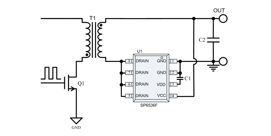 SP6536F是一顆高性能的開關電源次級側同步整流控制電路。在低壓大電流開關電源應用中,輕松滿足6級能效,是理想的超低導通壓降整流器件的解決方案。芯片可支持高達150kHz的開關頻率應用,并且支持CCM / QR / DCM等開關電源工作模式應用,其極低導通壓降產生的損耗遠小于肖特基二極管的導通損耗,極大提高了系統的轉換效率,大幅降低了整流器件的溫度。
